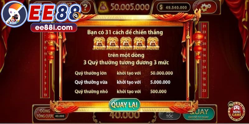 - Tỷ lệ thưởng cao: Ngoài hũ jackpot khủng thì đây chính là trò chơi có tỷ lệ thưởng hấp dẫn với cơ hội trúng thưởng lớn cho người sử dụng.